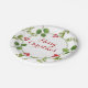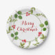 Elegant & festive hand painted watercolor winter greenery and holly berry border Merry Christmas paper plates.