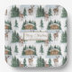 Watercolor Winter Wonderland Rustic Barn Christmas Paper Plate
