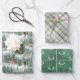 This Christmas woodland wrapping paper set of 3 sheets features coordinating holiday patterns: Deer in forest, plaid, and woodland green with deer antlers.