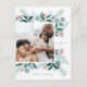 A holiday photo postcard features original watercolor illustrations of winter leaves and berries.