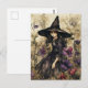 Watercolor Witch With Flowers Postcard