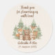 This cute watercolor woodland animals round sticker is perfect for sealing envelopes, decorating favours, or adding a final touch to your baby shower. It features an adorable bear, fox, deer, hedgehog, and owl, and is fully customisable with a thank you message, parents-to-be's names and shower date. Easily personalised to match your theme! A charming, rustic addition to any gift or decoration.