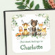 Watercolor Woodland Animals Bookplate Labels. Baby Animals include Bear, Deer, Moose, Racoon, Bunny Rabbit, Fox and Owl on eucalyptus leaves and forest greenery. Add Name.