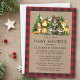 Watercolor Woodland Animals Baby Shower Invitation. Baby Animals include Bear, Deer, Moose, Racoon, Bunny Rabbit, Fox and Owl with a backdrop of pine trees. Kraft Paper Style, Forest Green Pine, Red Buffalo Plaid.