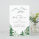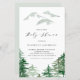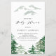 Invite guests to your event with this woodland theme baby shower invitation. It features green watercolor trees and mountains. This whimsical baby shower invitation is perfect for spring, fall and winter events. This woodland baby shower invitation will also be perfect for forest and woodland theme baby showers.