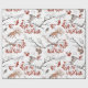 Beautiful rustic Christmas wrapping paper features painted woodland red berries and branches, with cosy forest animals on a white background. Shop this store for coordinating holiday designs.