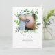 Trendy jasmine, eucalyptus, ivy and ferns wild woodland forest pregnancy announcement photo card designed to be quickly and easily customised to your specifics. A square photo is recommended.