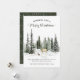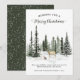 This holiday card features winter forest with deer family and snow and personalised with your custom text. Back features snow overlay on dark green background.