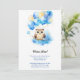 Celebrate your little one's cosmic journey with our captivating watercolor cute woodland owl-themed baby shower invitation card! Personalise the celestial magic by adding your child's name , making it a truly unique keepsake. Whether you choose to print or download our stunning template, you'll enchant your guests with celestial wonders, twinkling stars, and dreamy moonlit skies. Prepare for an out-of-this-world celebration that will leave everyone starry-eyed. Get ready to make memories that will last a lifetime with our celestial owl surrounded by blue balloons Baby shower invitation card!
