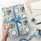 Watercolor wreath and stripe christmas holiday photo gift wrap. Hand lettered text. A modern take on tradition holiday colours.
