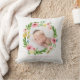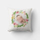 Watercolor wreath blush pink photo birth details cushion