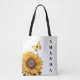 Watercolor Yellow Butterfly Side Name Sunflower Tote Bag