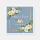 Watercolor Yellow White Floral Gold Frame Dusty Blue Wedding Paper Napkin