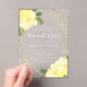 Beautiful yellow watercolor floral Bat Mitzvah clear acrylic invitation. This elegant design features yellow watercolor flowers, faux gold geometric frame and confetti glitter border.