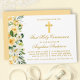 Elegant Watercolor Yellow White Floral First Holy Communion Invitation includes yellow roses, white flowers and greenery. Gold Cross.