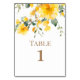 Watercolor Yellow Floral Wedding Gold Text Table Number