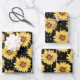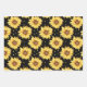 Watercolor Yellow Sunflowers Floral Black Wrapping Paper Sheet