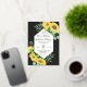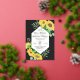 Design features a bouquet of watercolor sunflowers, eucalyptus and others leaves and twigs on black background. Featuring luxurious gold foil text.