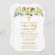 Elegant Watercolor Yellow White Floral First Holy Communion Invitation includes yellow roses, white flowers and greenery. Gold Cross. Bracket Style.
