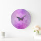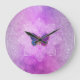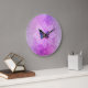 Large Wall Clock - Energy Enhanced by Anna Rosa: === Mystical Beautiful Abstract Watercolor Celestial Textures Sounded by Magenta Pink Purple Lavender Faux Glitter Topped with an elaborate white meditative Mandala with a Gold gilded and Blue Turquoise Magenta and Pink Butterfly.