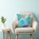 This pretty watercolor abstract patterned pillow with splashes of blue and orange hexagons and stripes, makes a lovely addition to kids room.