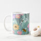 Watercolour Bees Flying Over Flowers Garden Coffee Mug