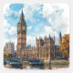 A watercolour Big Ben & Westminster art piece. The famous landmark in London, UK for travel enthusiasts who love to see the wonders of the world.