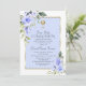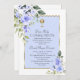 Elegant card design featuring watercolour delicate blue flowers and green leaves, a blue shoe with a faux gold frame and chalice; on the back the same flowers on a white background. On the back white flowers bouquet. Use Personalise tool to add your info, change fonts, font's colours. For matching items, please, visit my Holy Communion Collection.