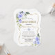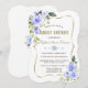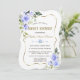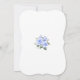 Elegant card design featuring watercolour delicate blue flowers and green leaves, a faux gold frame, floral divider, on a white background. On the back white flowers bouquet. Use Personalise tool to add your info, change fonts, font's colours. For matching items, please, visit my Blue Floral Bloom Collection.