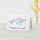 Featuring an original Modern Nan watercolour painting design, this adorable card features a pink, purple, and blue humpback whale with a spatter paint background.
