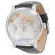 Political world map featuring watercolour filled countries on an off-white aged background. The map includes country names, borders and sea names.