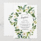 Watercolour White Flowers Gold Cross Girl Baptism Invitation