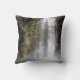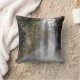 A square throw pillow with a photo of a waterfall and a beautiful arcing rainbow at the bottom. Add a dash of Nature to your room.