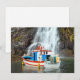 A fishing boat pictured against the backdrop of a waterfall; Quintupeu Fjord, Northern Patagonia, Chile - a beautiful corner of South America where the Andes plunge into the Pacific Ocean. [Our travel photography and designs are available as gifts for the home, cards, jigsaw puzzles, wall art and more]