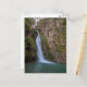 Beautiful waterfall surrounded by cliffs and shrubs in deep forest.