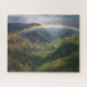 Waterfall in Lush Canyon with Rainbow on Kauai Jigsaw Puzzle