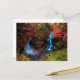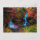 This is a picture of waterfalls surrounded by colourful trees on a postcard.