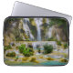 The sleeve is made of nice feeling material and seems very durable. I'm not sure how easy it'll be to clean, but the construction seems sound and the fabric is quick thick. I also like the double zipper. The printing is lovely and appears durable. The white on black contrast is nice, and the design very elegant.