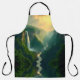 This apron features a breathtaking scenic design of a lush green valley framed by forested cliffs. A majestic waterfall cascades into a winding river, while golden light from sunrise or sunset illuminates the sky, creating a serene and picturesque atmosphere. The artwork blends natural beauty with artistic detail, making this apron both functional and inspiring. Perfect for cooking, baking, or crafting, it brings a touch of tranquility and wonder to your kitchen. A unique gift for nature lovers, dreamers, or anyone who appreciates vibrant landscape art.