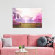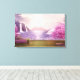 Canvas print with a scenic image of a peaceful purple lake. Surrounded by lush cherry trees and waterfalls.