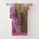 Towel set with a scenic image of a peaceful purple lake. Surrounded by lush cherry trees and waterfalls.
