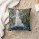 A waterfall scene from wool needle felting art of an original creation. Back of pillow is an ocean blue colour.