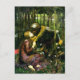 John William Waterhouse La belle dam sans mercie postcard. Oil painting on canvas from 1893. Pre-Raphaelite painter John William Waterhouse regularly drew on literary themes, and The Beautiful Woman Without Mercy is inspired by an 1820 poem published by the English poet John Keats. A knight in shining armour gazes down into a beautiful woman’s eyes as she sits in a lush copse of trees. The girl wears a purple dress with white polka dots on the skirt and a pink heart on the sleeve. Her hair is dark blonde, and she is surrounded by beautiful flowers and dark green grass. A great gift for fans of J.W. Waterhouse, the Pre-Raphaelites, Keats, and Romantic English painting.