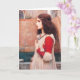 John William Waterhouse Juliet greeting card. Oil painting on canvas from 1898. The English artist John Waterhouse painted a variety of literary and mythical scenes with a charming degree of romanticism. Shakespeare was a frequent theme for Waterhouse, and Juliet stands as a beautiful example of his love of the female face in profile. Juliet is depicted as a young girl brown eyes and with wavy dark brown hair wearing a gold headband and a white renaissance dress with red sleeves. The girl is looking on the streets of Verona as she touches her blue bead necklace. A great gift for fans of John Waterhouse, Romeo and Juliet, Shakespeare, and English Romantic painting.