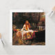 Card featuring John William Waterhouse’s oil painting The Lady of Shalott (1888). A beautiful woman in a white dress escapes on a boat from her fate to look at all the world through a mirror and weave a tapestry from it—but upon viewing Prince Lancelot, the curse follows the Lady of Shalott to her demise. Bright autumnal colours paint this tragic scene. A breathtaking gift for Arthuriana enthusiasts and Pre-Raphaelite collectors.