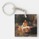 Keychain featuring John William Waterhouse’s oil painting The Lady of Shalott (1888). A beautiful woman in a white dress escapes on a boat from her fate to look at all the world through a mirror and weave a tapestry from it—but upon viewing Prince Lancelot, the curse follows the Lady of Shalott to her demise. Bright autumnal colours paint this tragic scene. A breathtaking gift for Arthuriana enthusiasts and Pre-Raphaelite collectors.