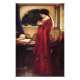 John William Waterhouse the Crystal Ball print. Oil painting on canvas from 1902. The Pre-Raphaelite English painter John William Waterhouse created some beautiful mythological and literary paintings. The Crystal Ball is an engaging work featuring a young woman in a flowing velvet red dress staring into a crystal ball. Her dark hair is pinned back in a bun, and she stands next to a desk with an open book, wand, and skull beside an open window. A great gift for fans of J.W. Waterhouse, fantasy, crystal balls, the Pre-Raphaelites, and Romantic English painting.