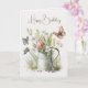 Retro watering can with tulips and butterflies in a watercolor effect for birthday.