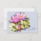 Waterlily on blue botanical watercolor and pencil wedding response card. Personalise this reply with your own 3 course meal options to help planning and to save costs and waste. Features a watercolor art of a water pink lily on a lake. Ideal for a botanical water or lake summer garden wedding. Other matching wedding items are available and custom items can be created by request. © Original hand watercolor painting and design by Sarah Trett for www.mylittleedenweddings.com