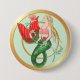 Lovely fantasy design with blonde mermaid holding a pretty waterlily. Ornate gold art deco style background.
